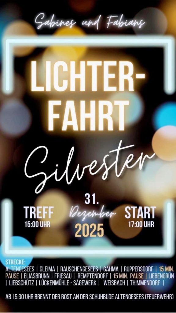 Die jährliche Lichterfahrt führt auch in diesem Jahr wieder am Silvesterabend am Abzweig Röppisch vorbei.